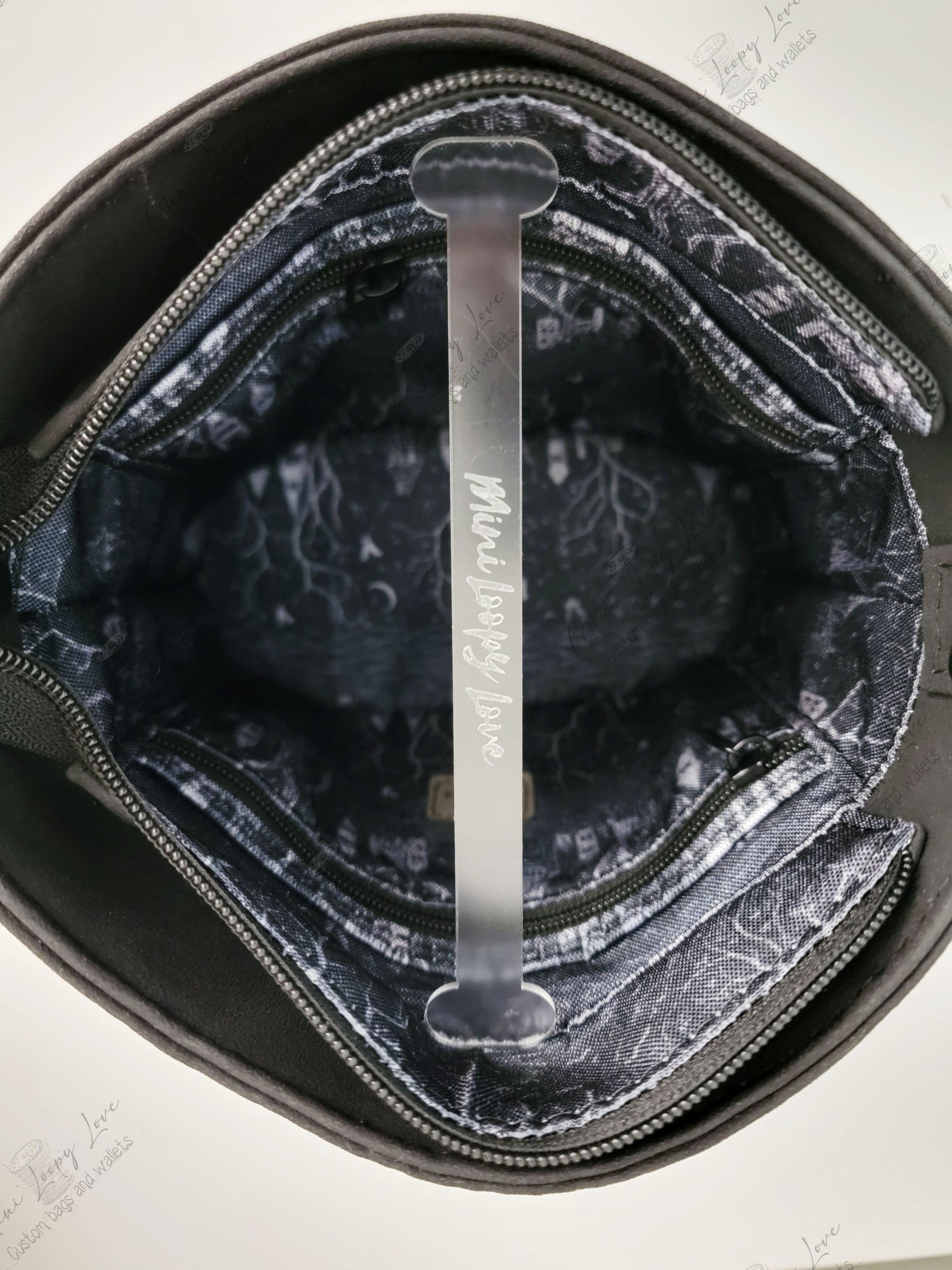 Inside the bag, the main compartment is generous in size and can carry all your essentials and more! Each lining panel offers a zippered pocket/slip pocket combination.