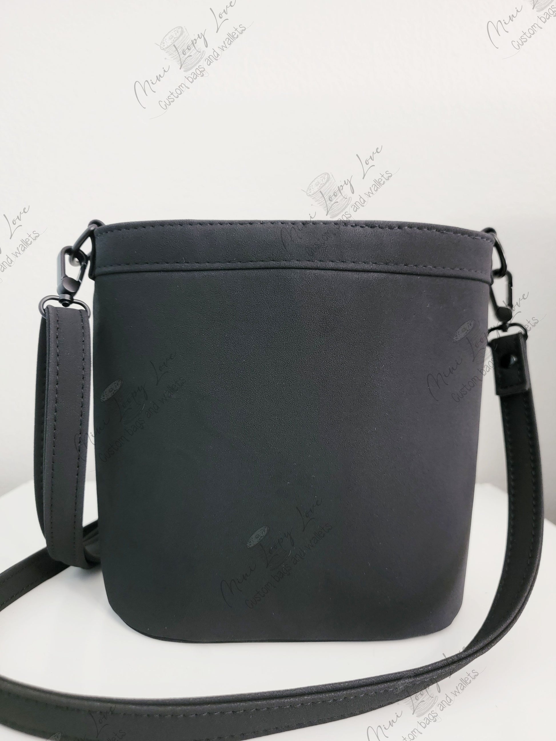 The Baby Belle Bucket Bag is a smaller bucket bag that boasts a recessed zipper closure.