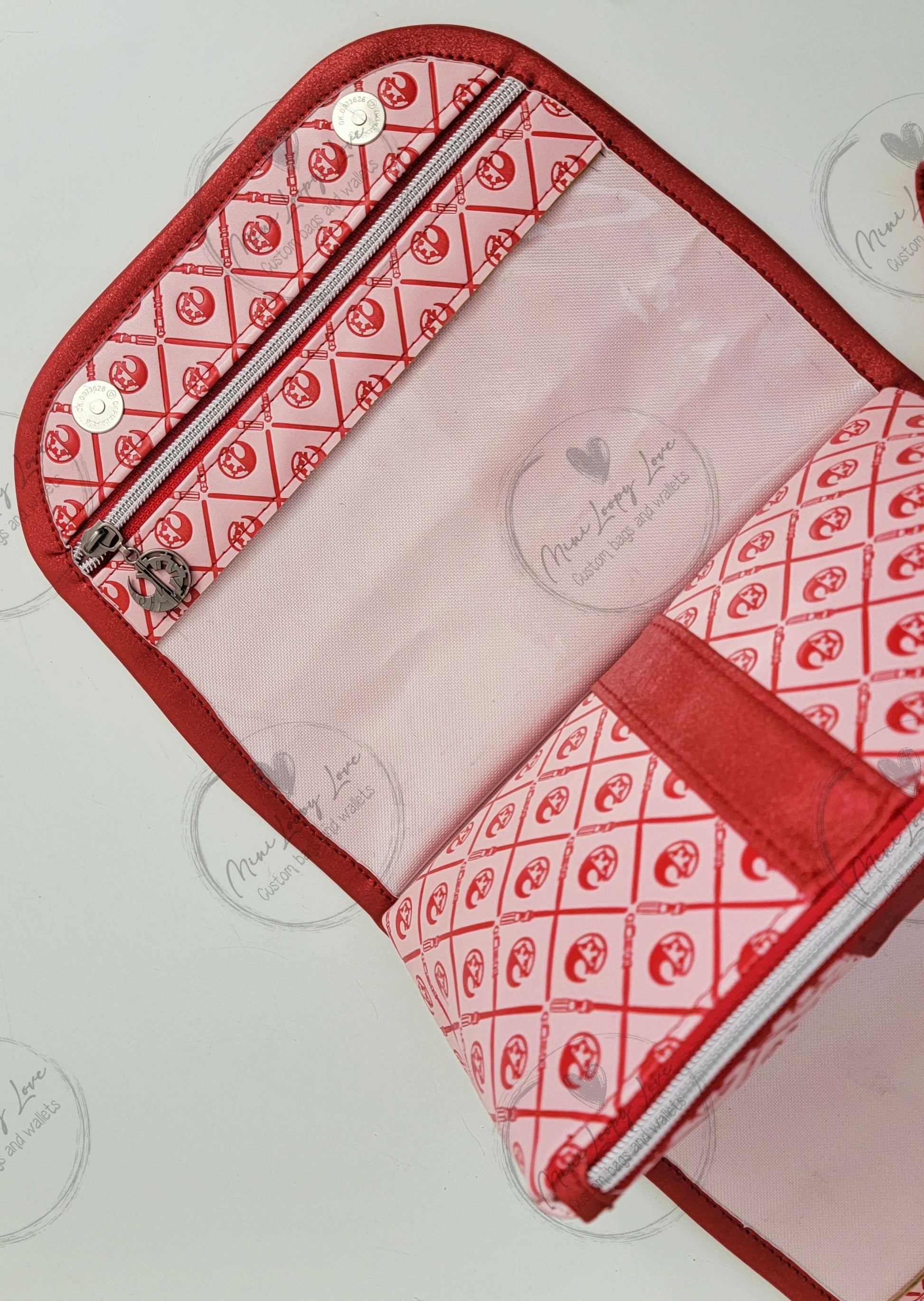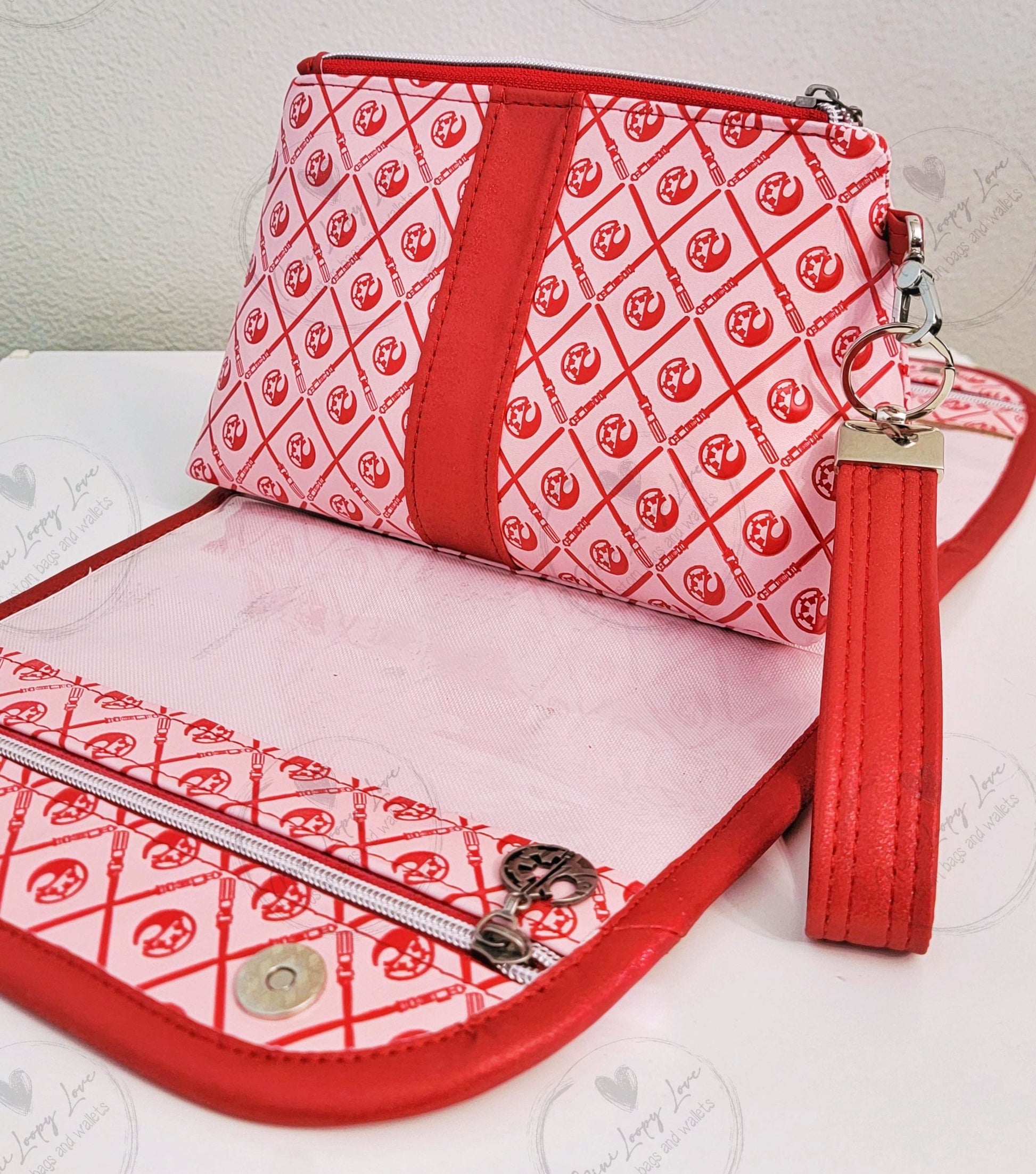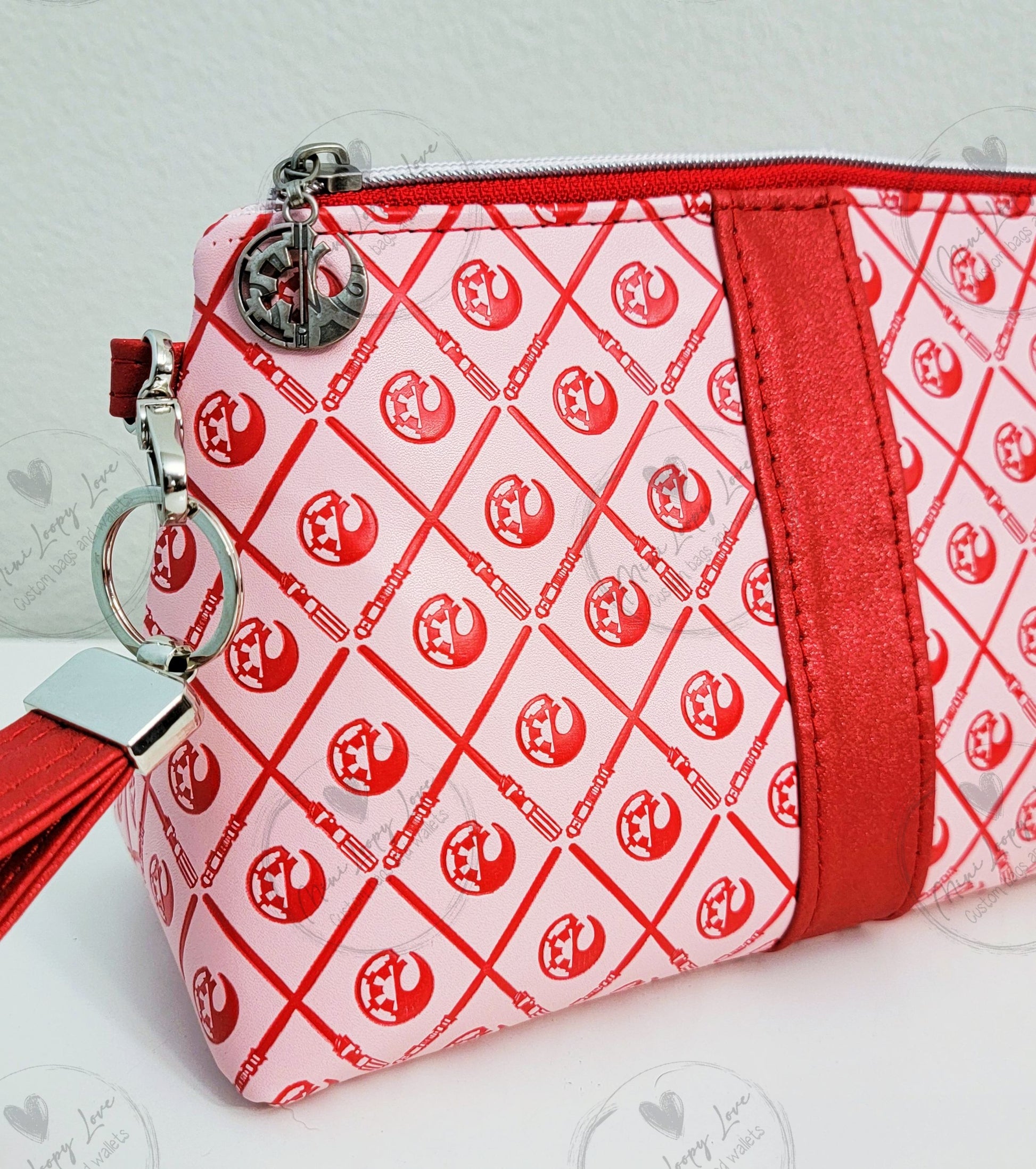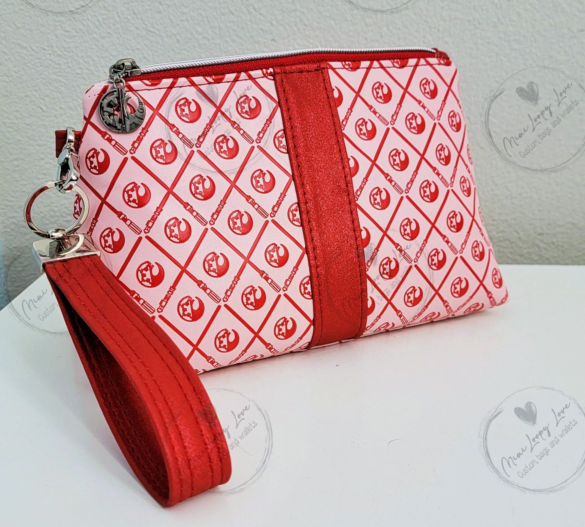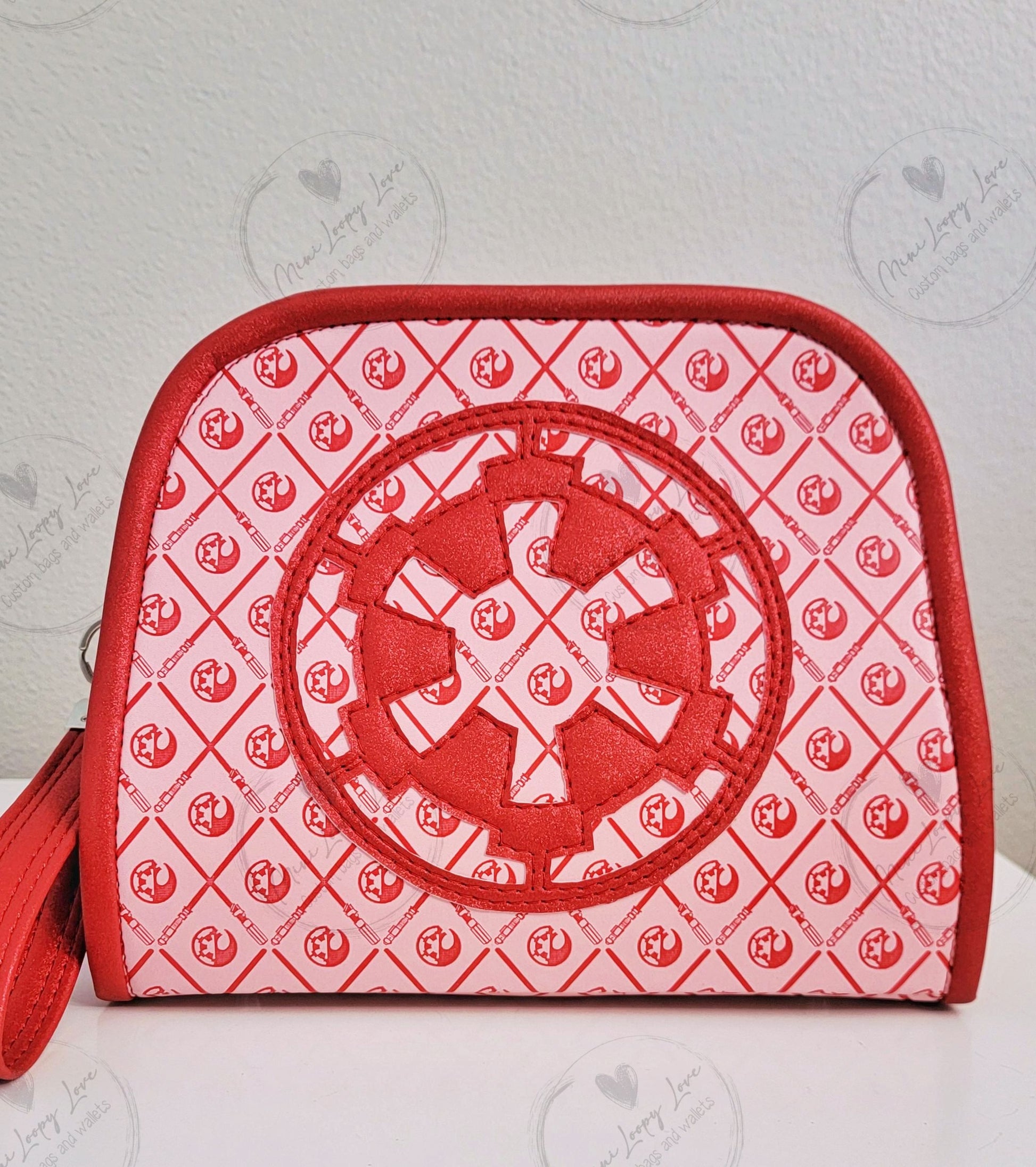Made in custom debossed SW symbols with glitter red vinyl accents.