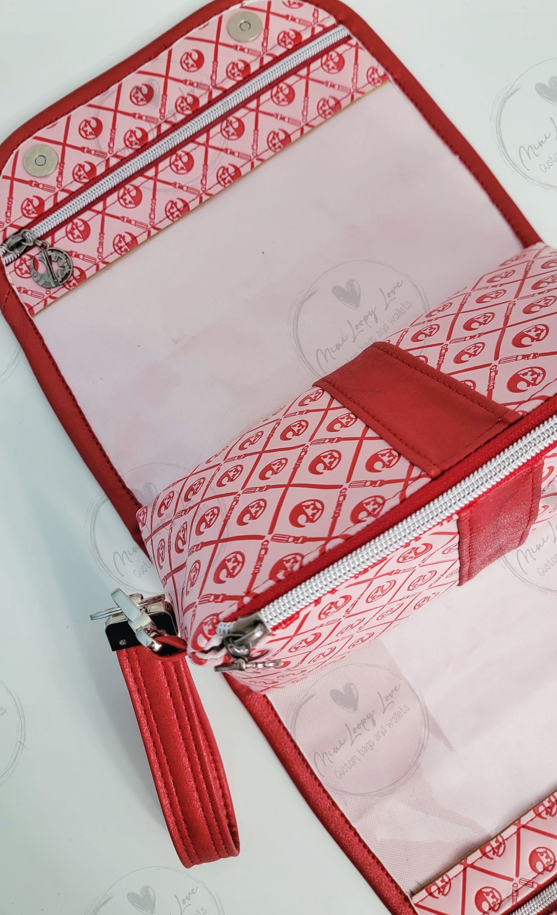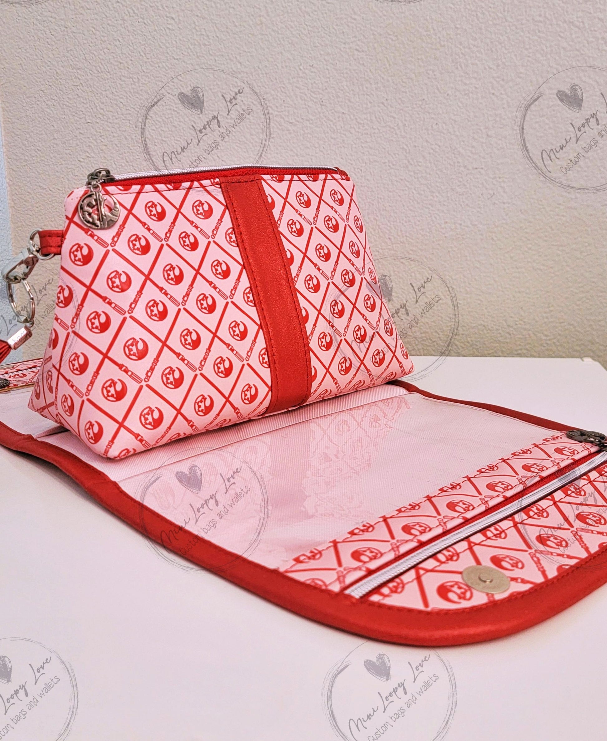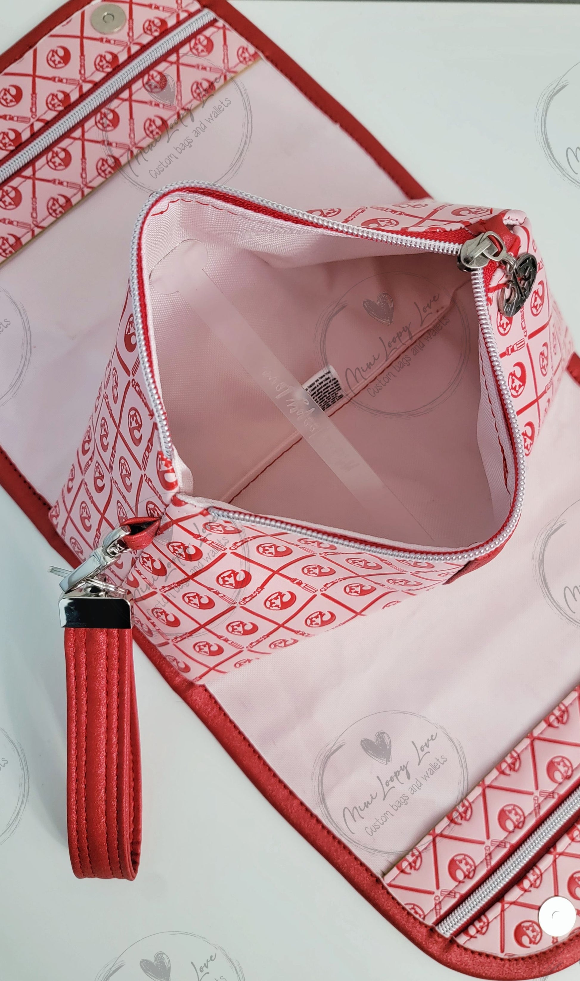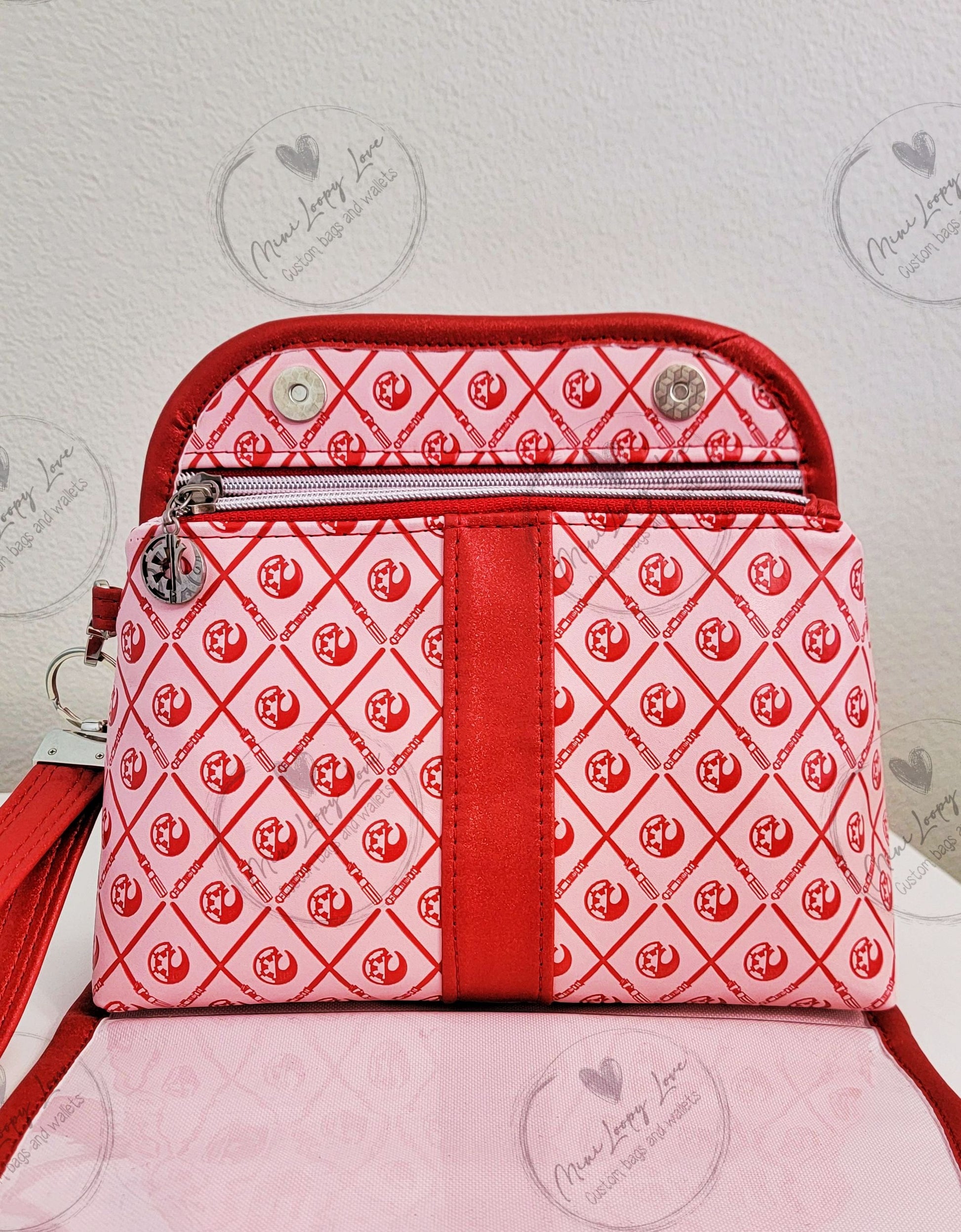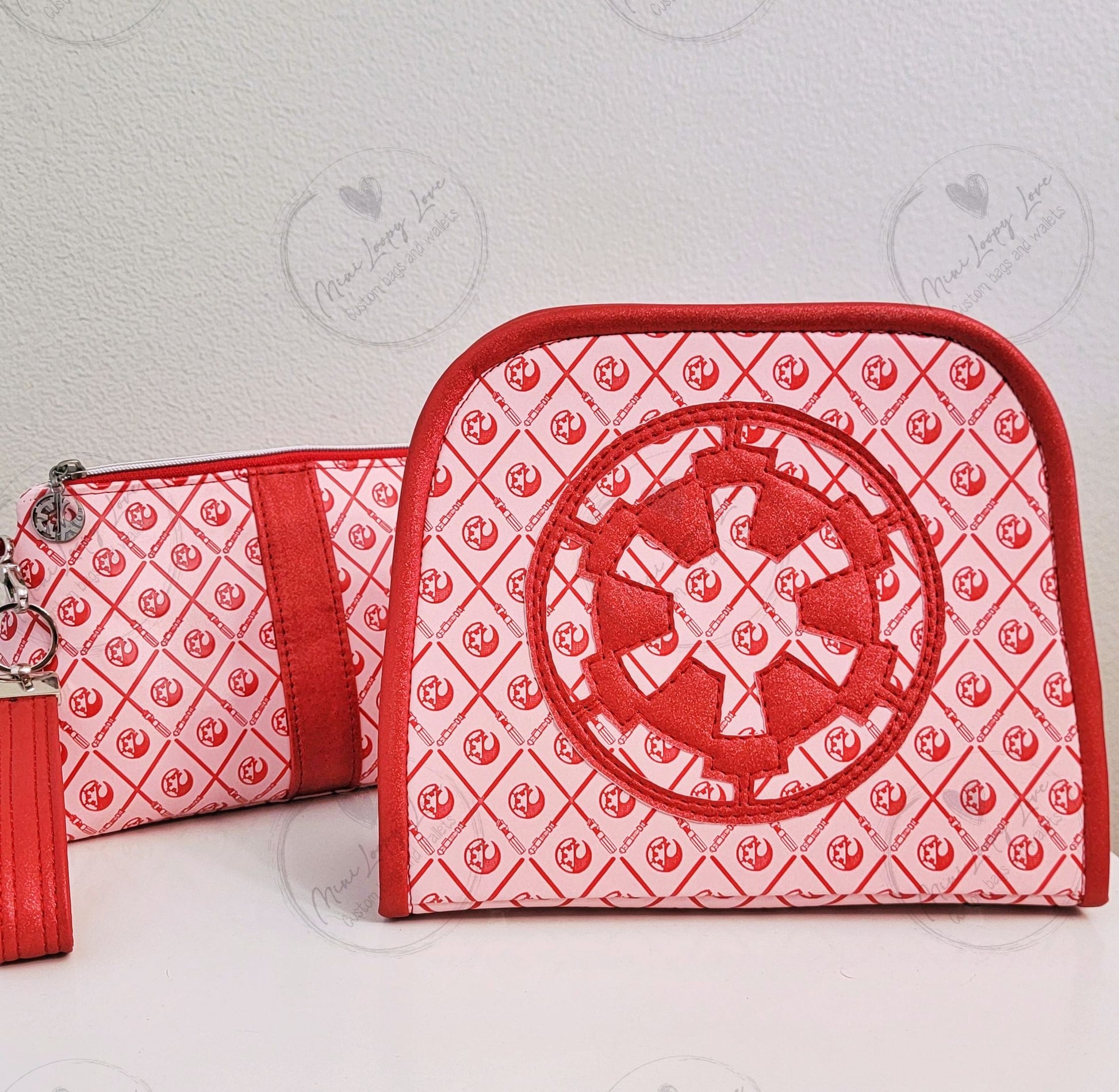 Made in custom debossed SW symbols with glitter red vinyl accents.