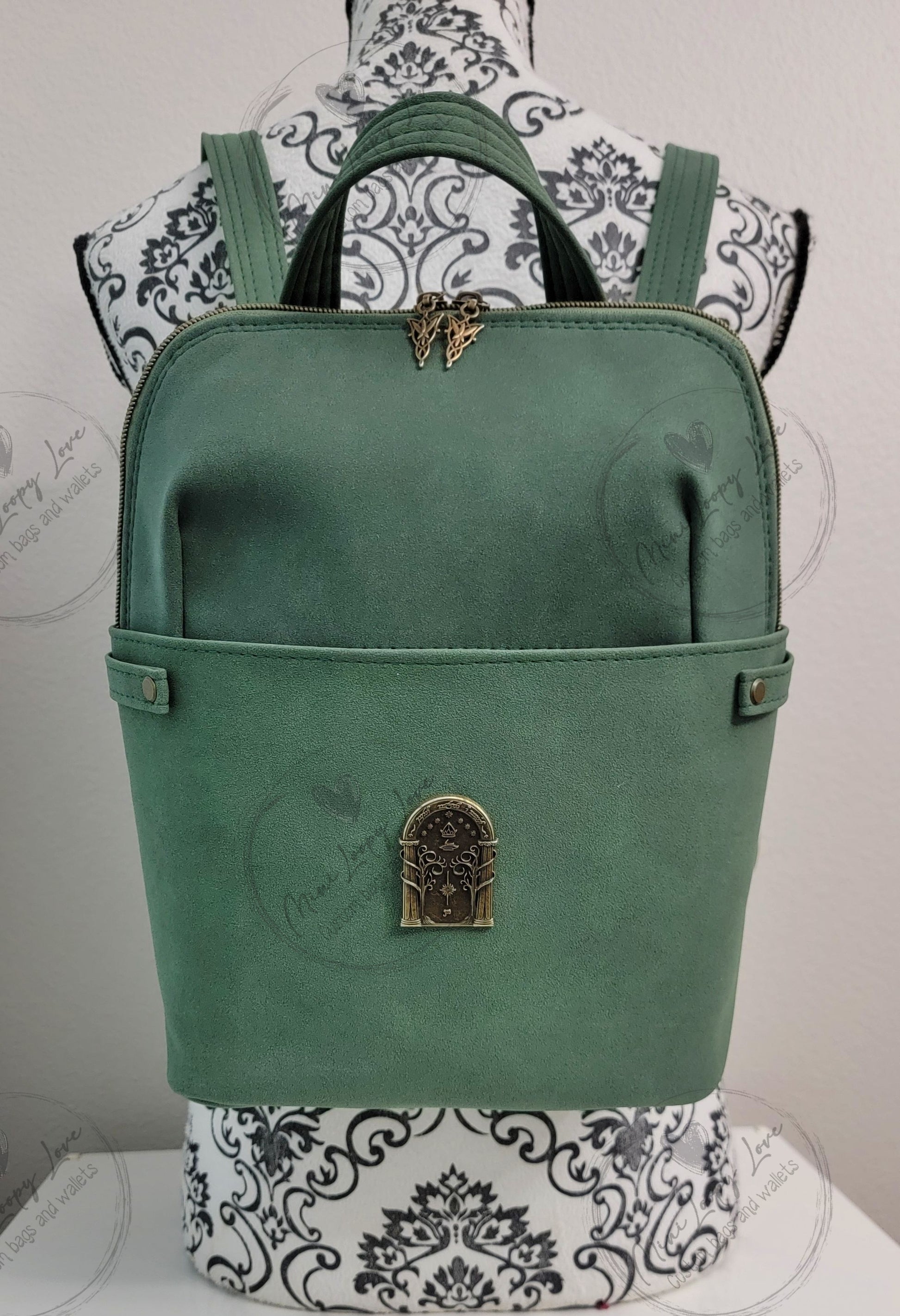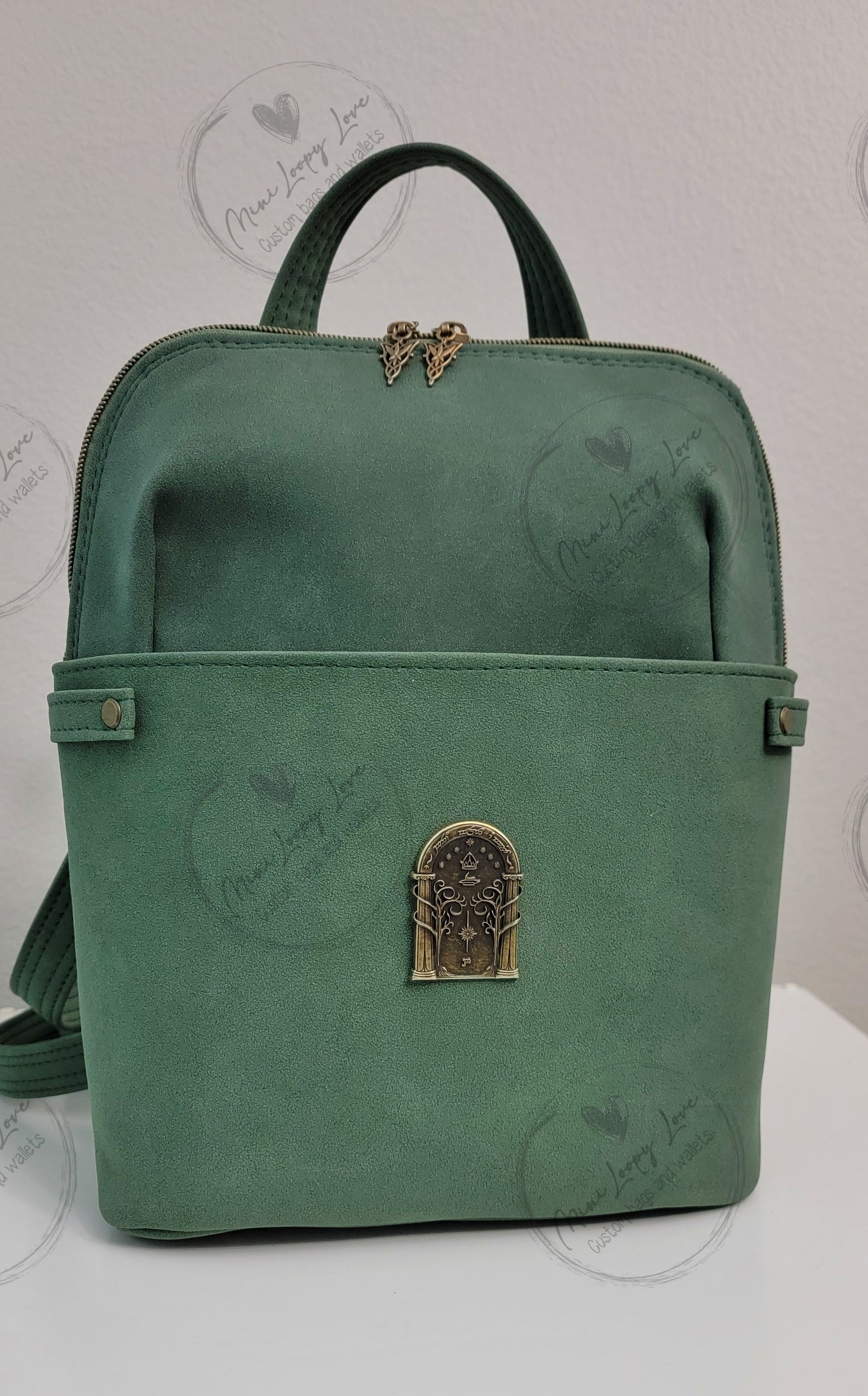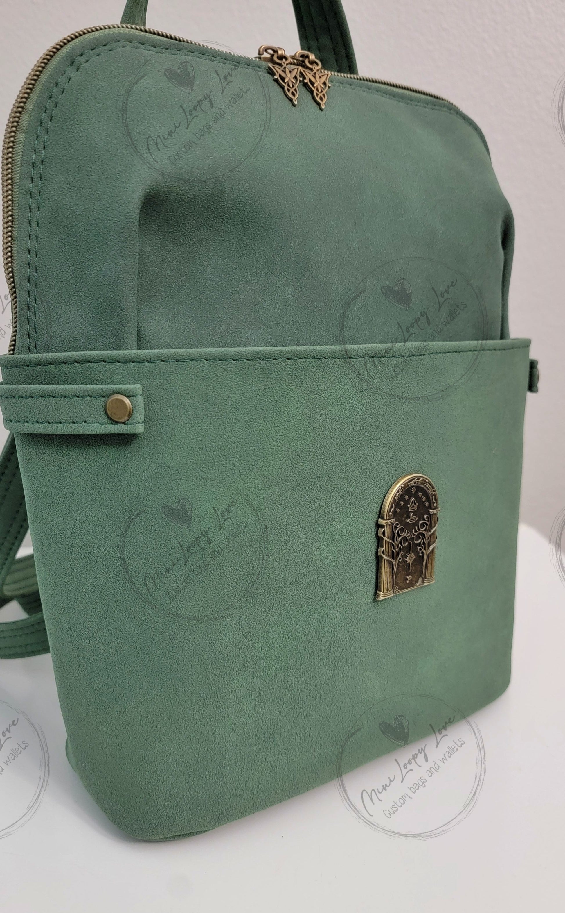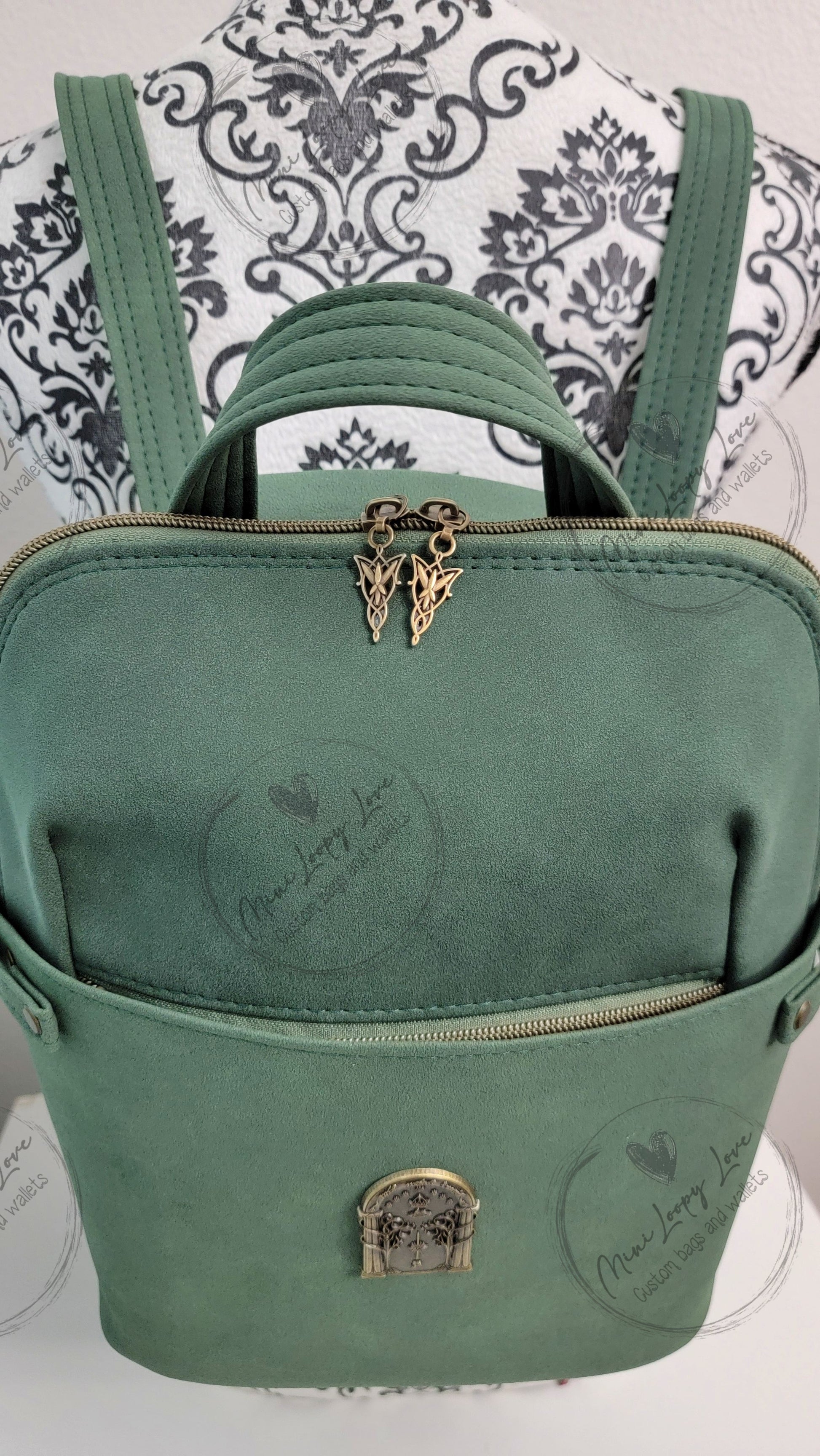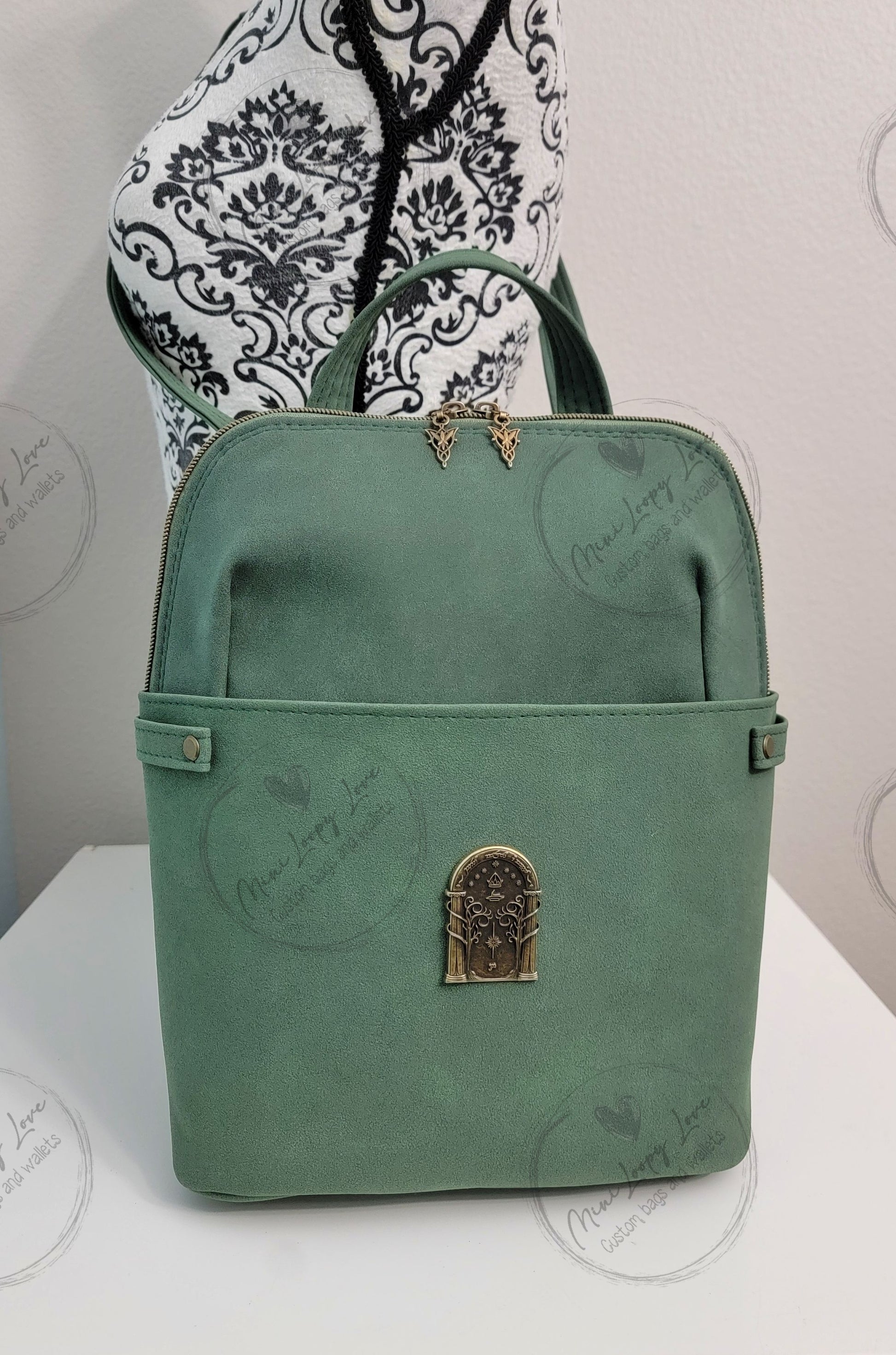 This baby converts to a crossbody bag by just pulling that handle cover area up! There is a hidden zipper pocket behind the front and back slip pockets. Inside is another zipper pocket and slip pocket. It's about 10" W x 11.5” H x 5" D