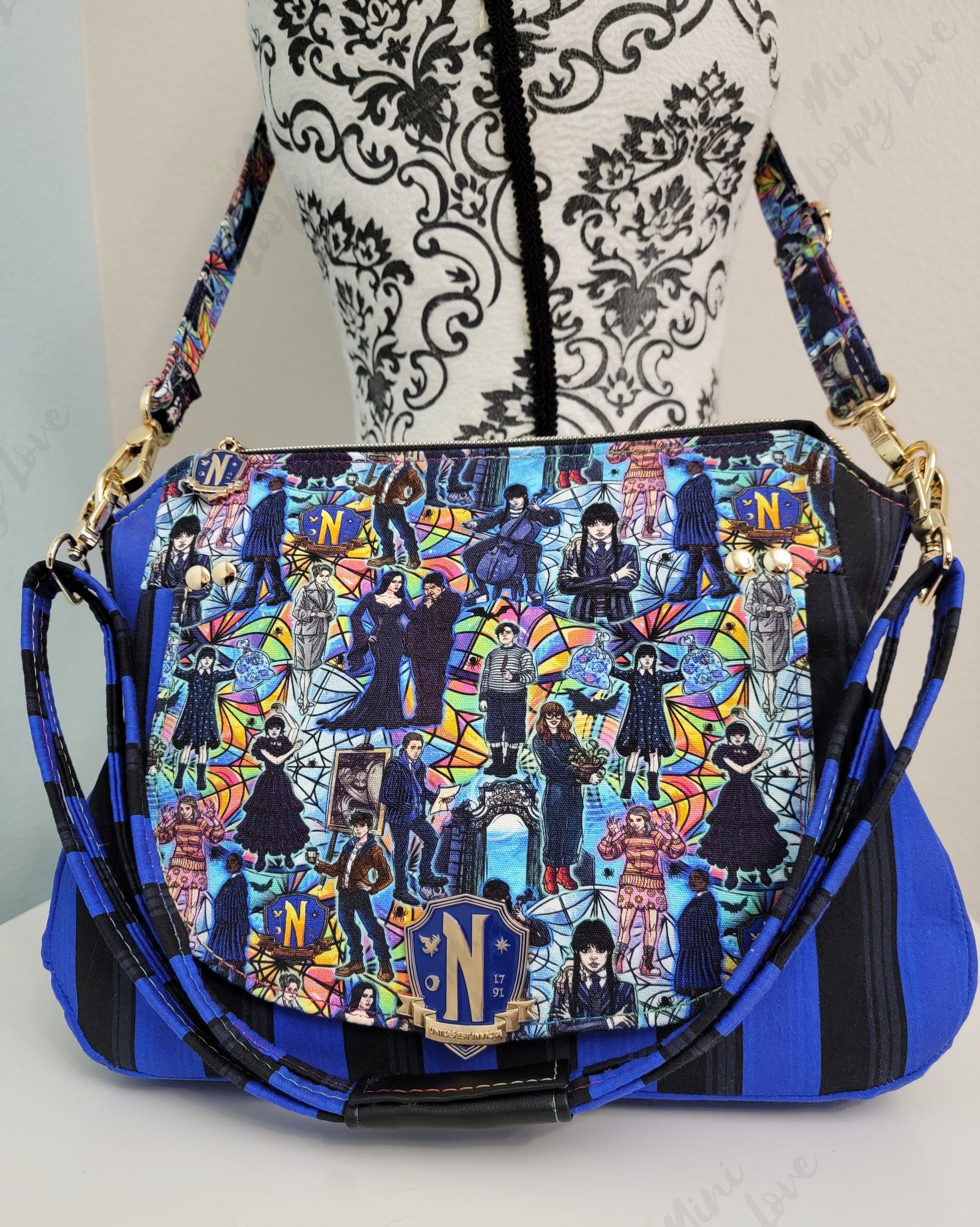 - Gold hardware used throughout