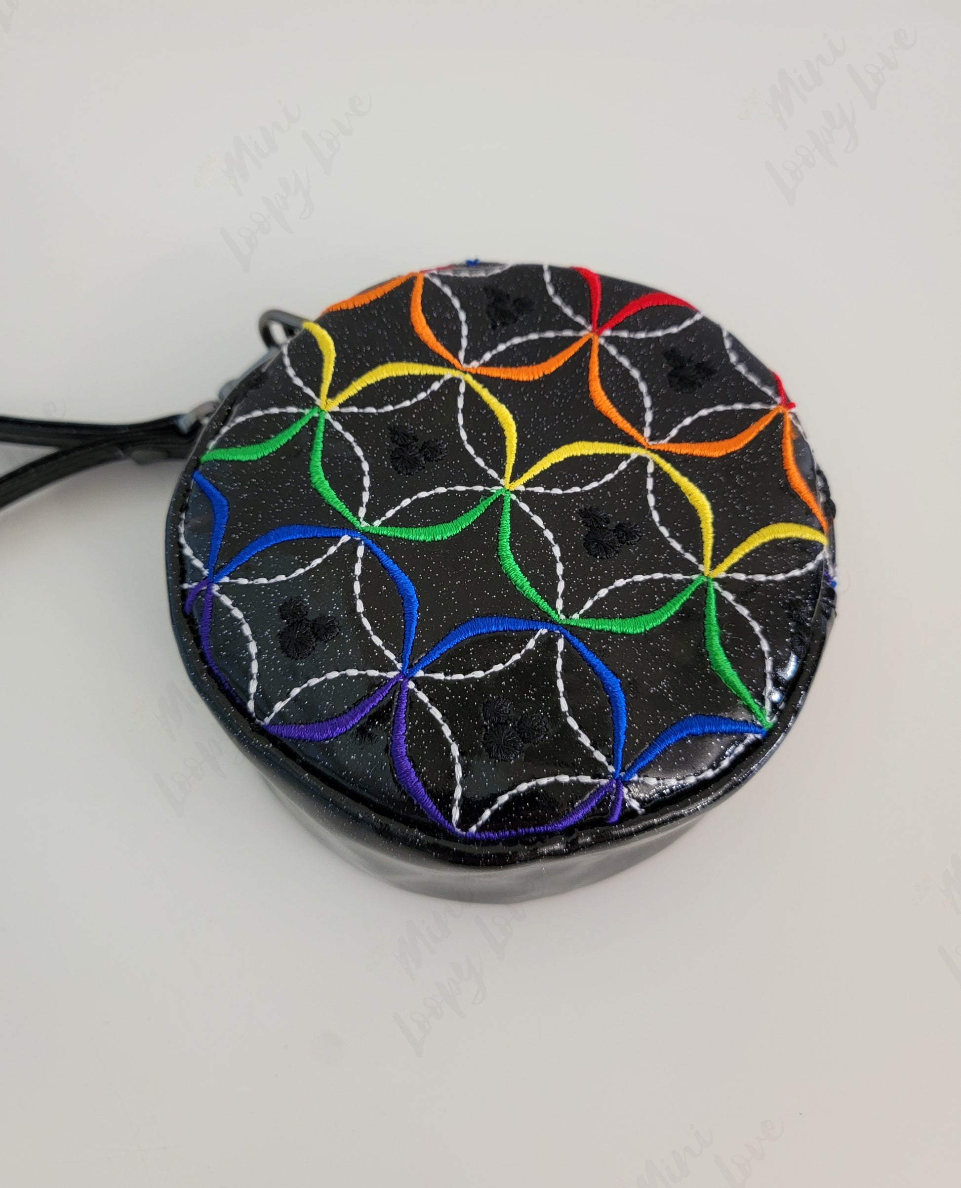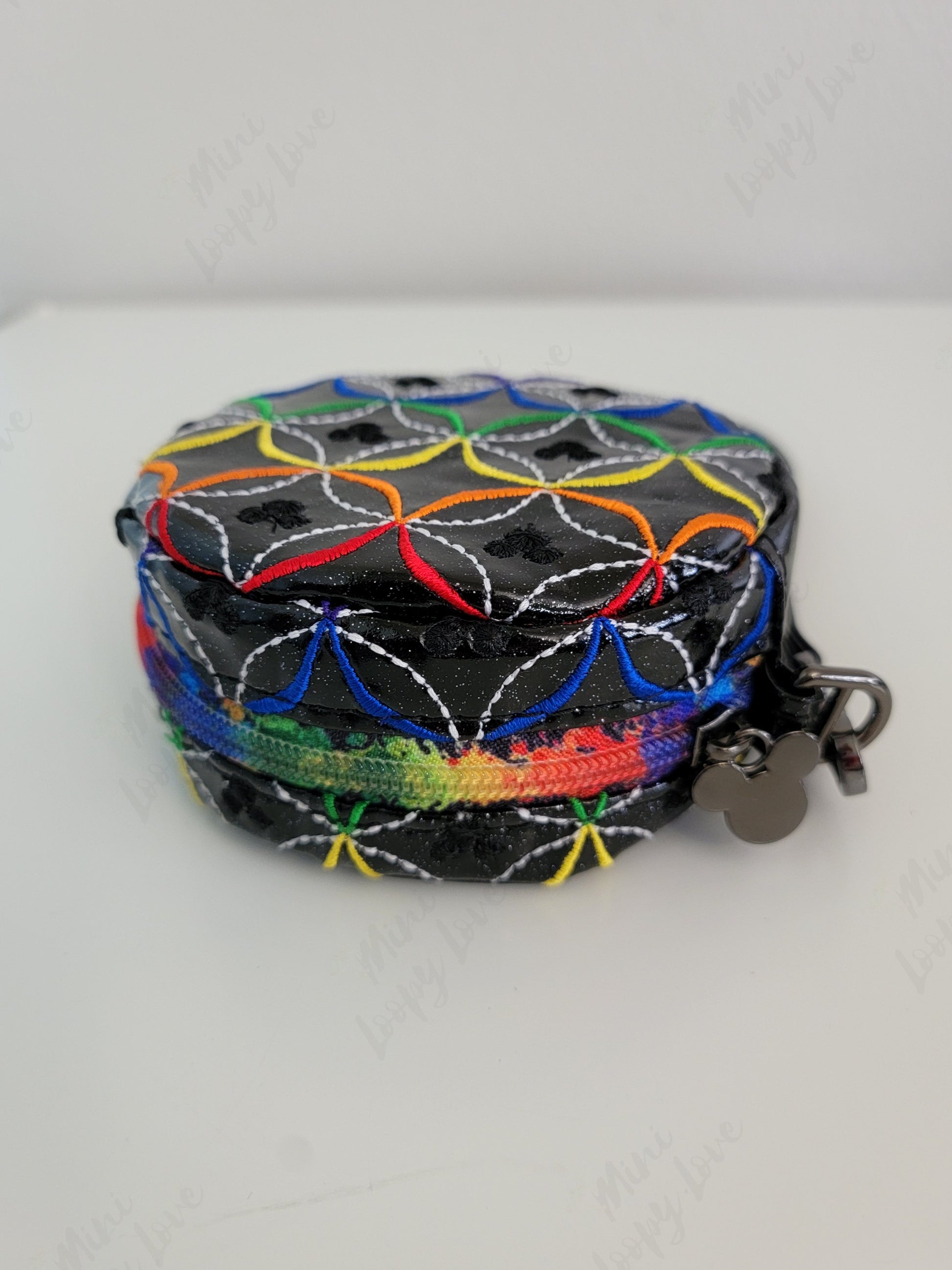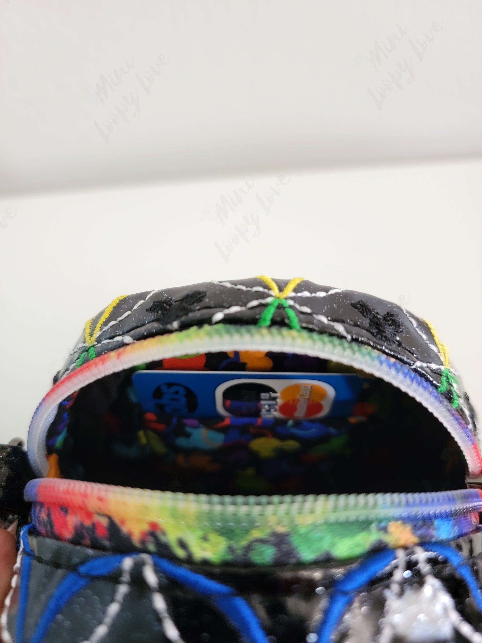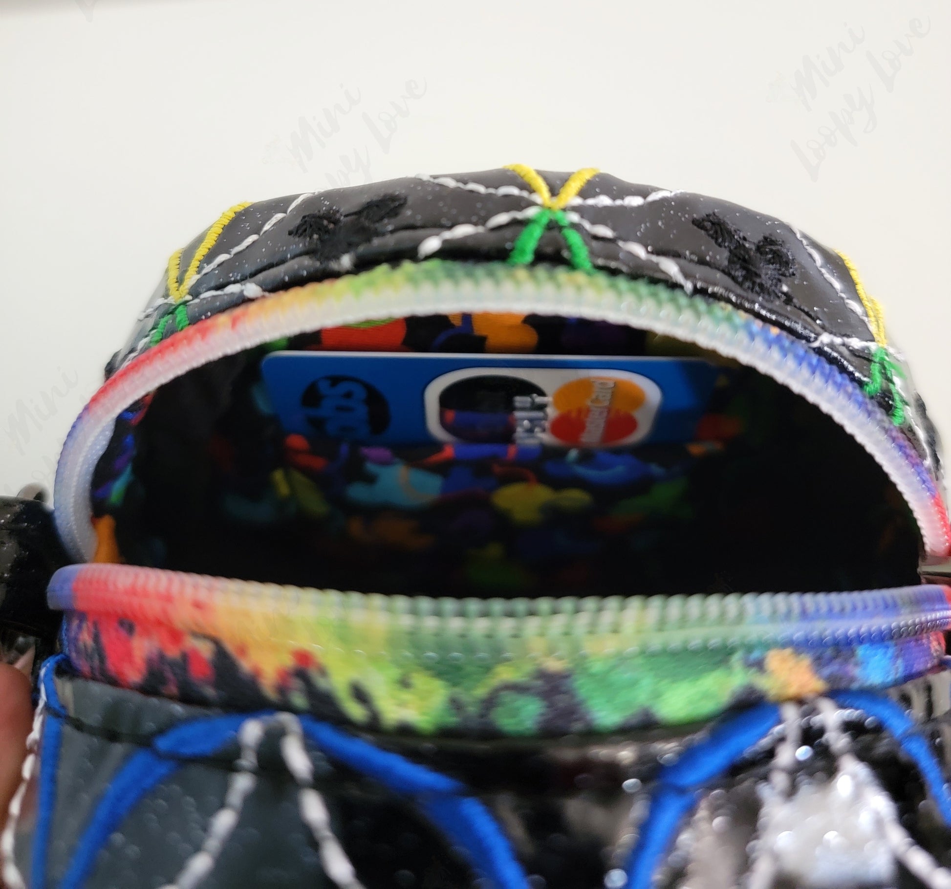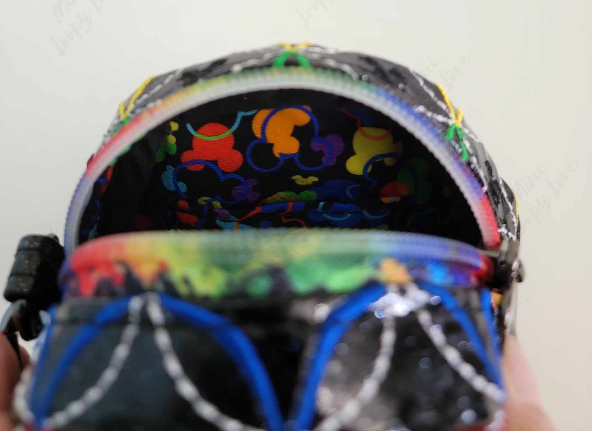 - Lined with custom cotton woven "rainbow Mousefetti"