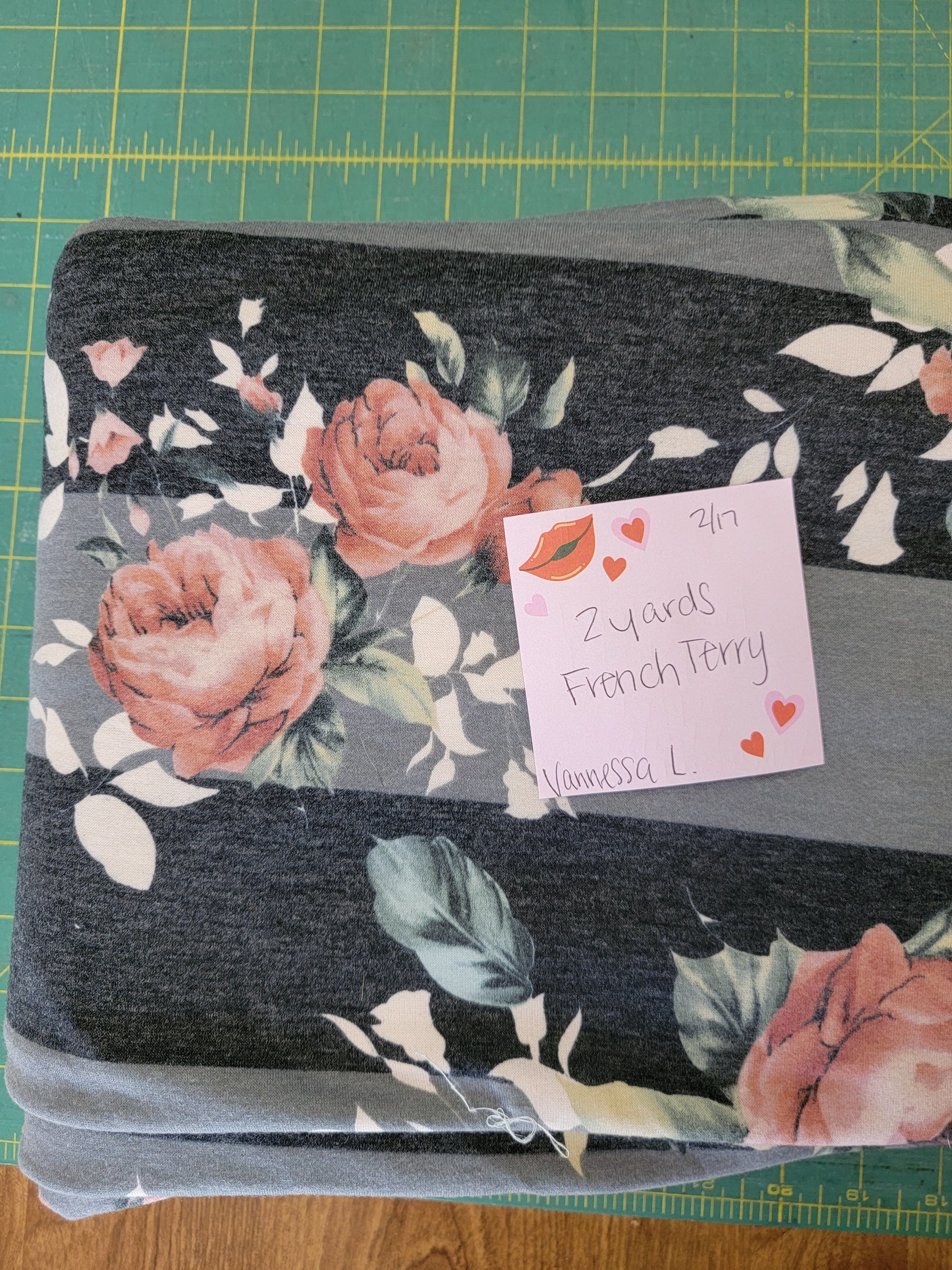 French Terry: Striped Roses- 2 yards