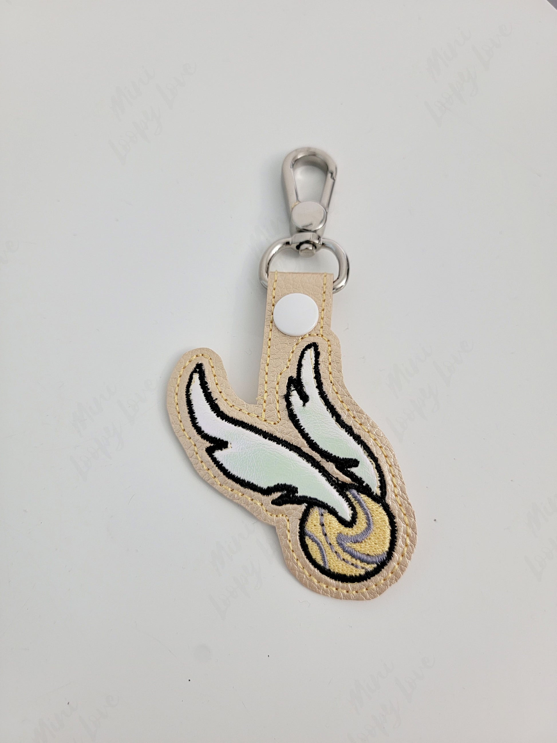 Take the golden ball with you anywhere you go with this Golden Ball Keychain! Embroidered on gold vinyl with gold thread and a shimmer white vinyl applique. Silver swivel clip to finish it off.