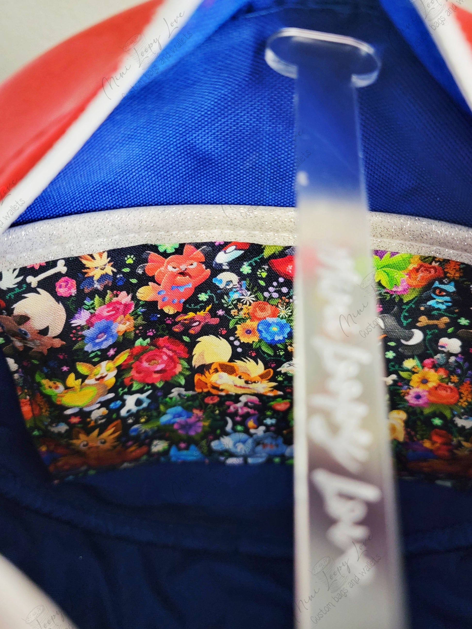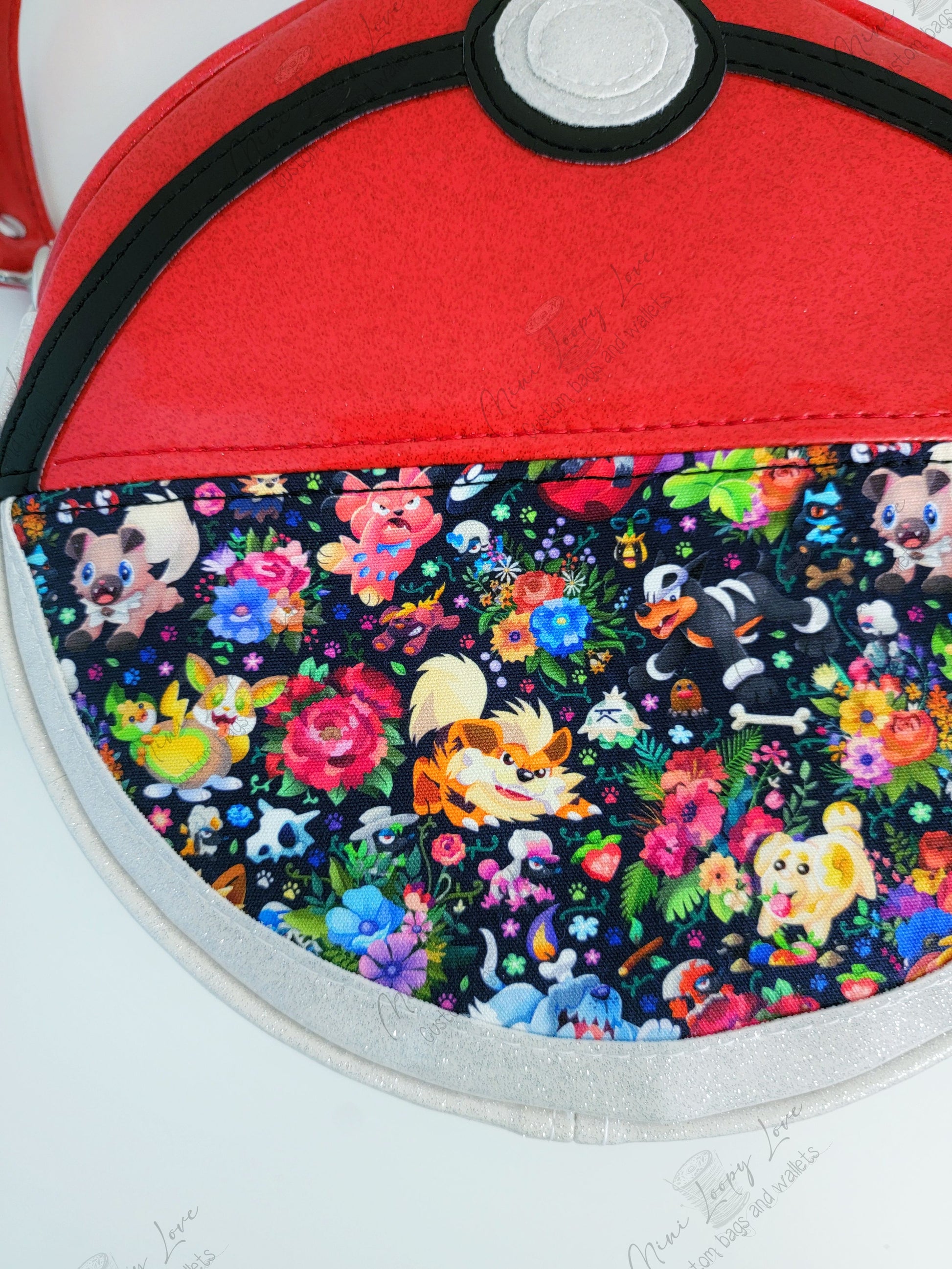 - Custom poke ball applique designed and made by me to look like an open poke ball.