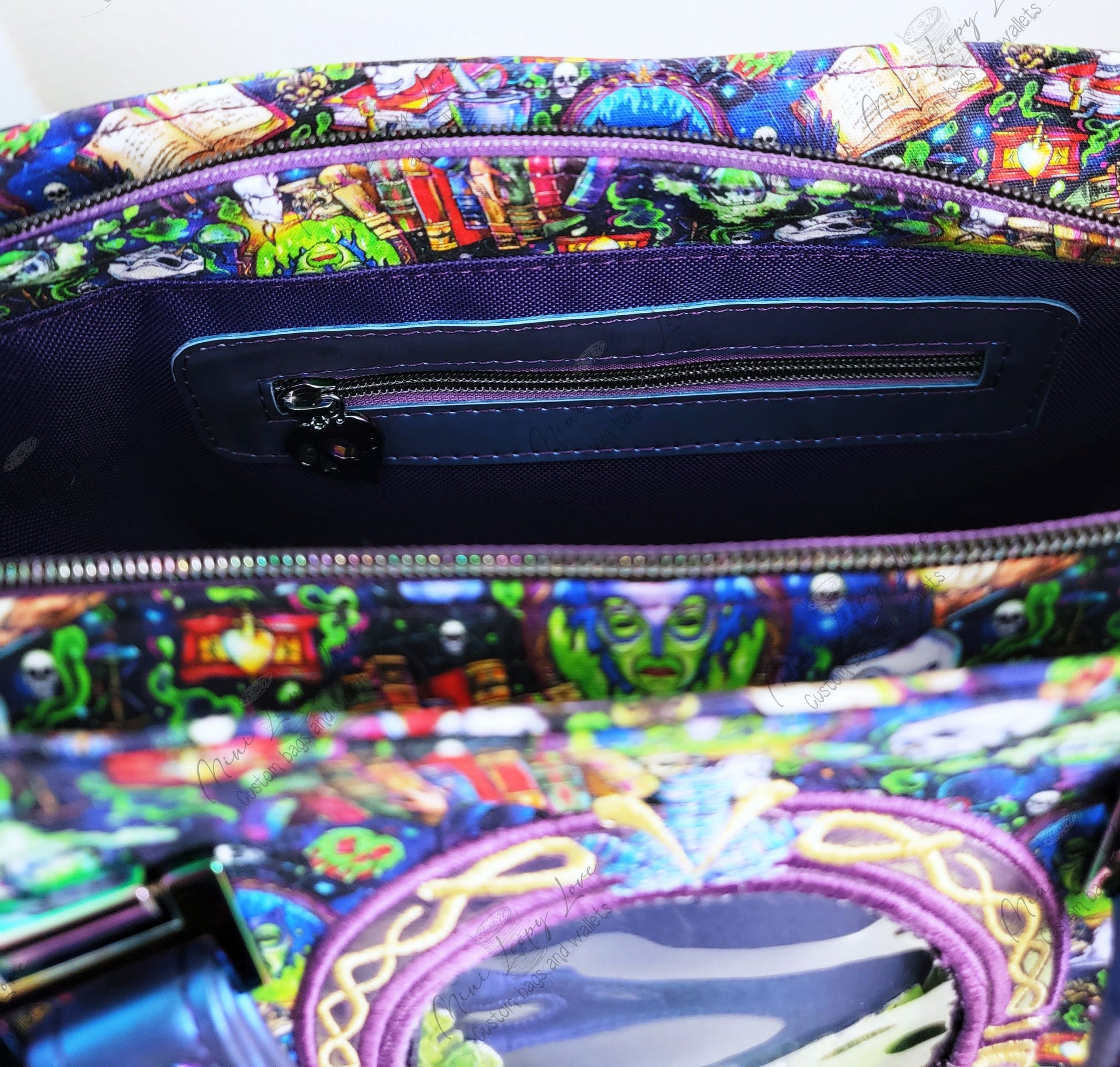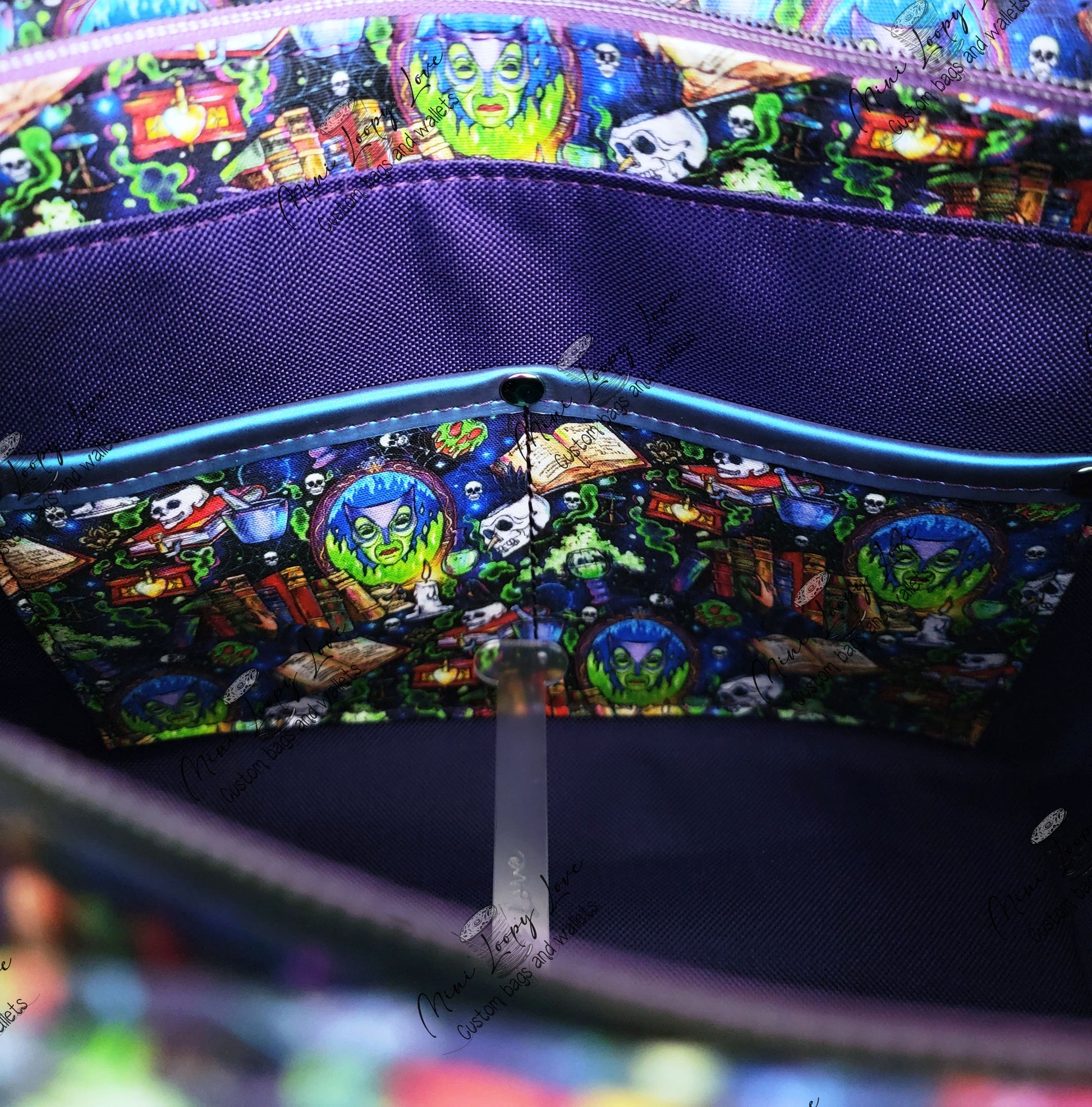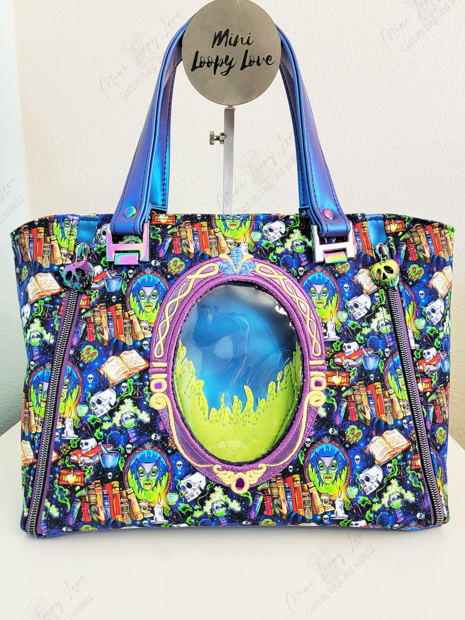 - Large, see through, zippered pocket on the front of the bag that extends from one side to the other (perfect for pin display).