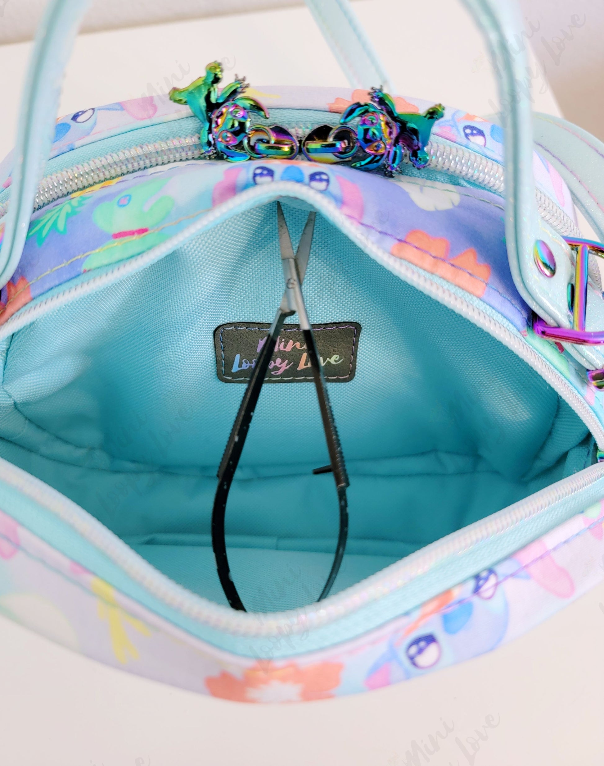 The Tiny Quilted Beast offers dual zippered compartments, a short carry handle, and a cross-body strap. It can hold your essentials for a day or night out!