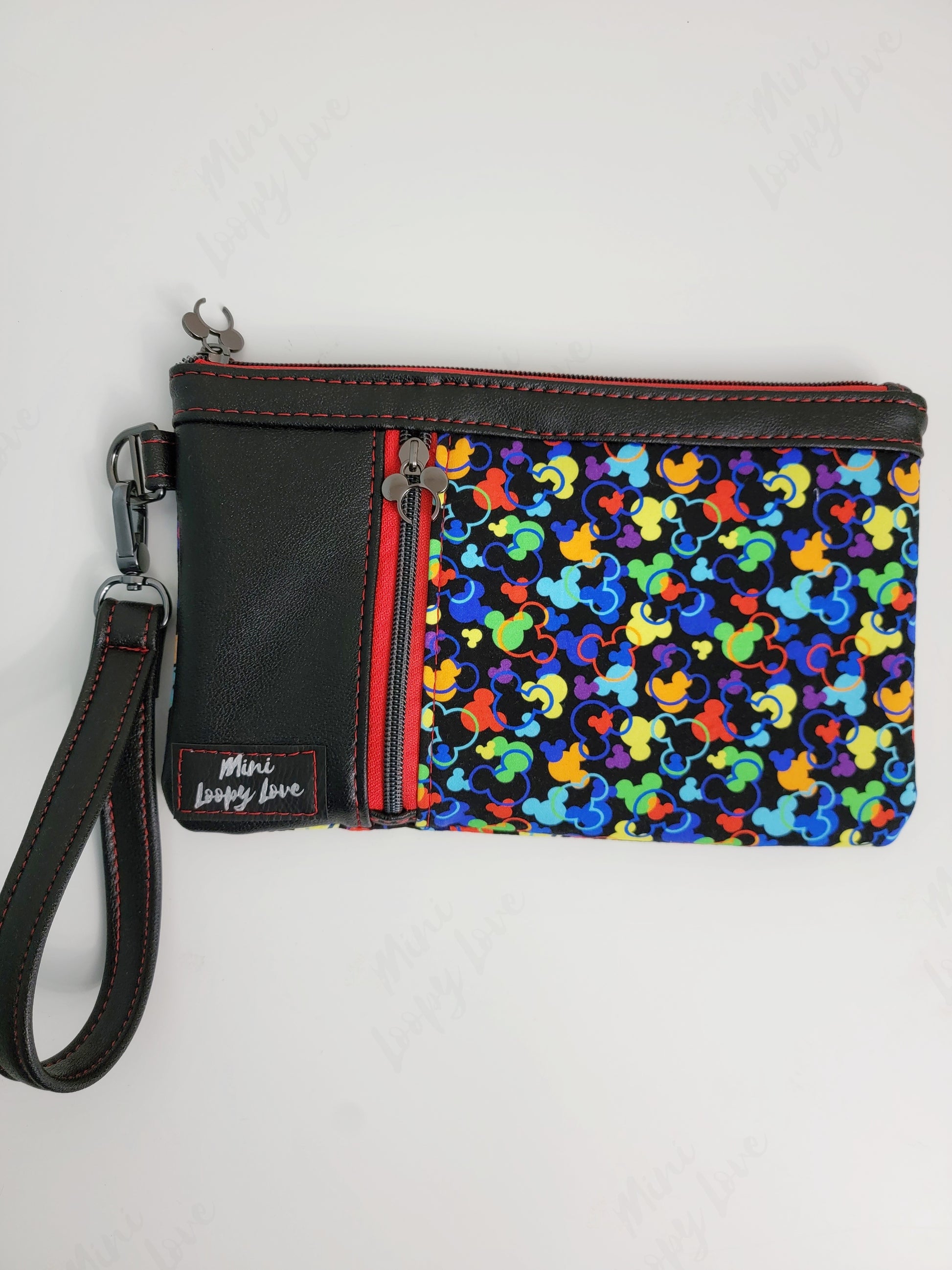 Zippy clutch- Black Mouse Confetti w/ red zipper